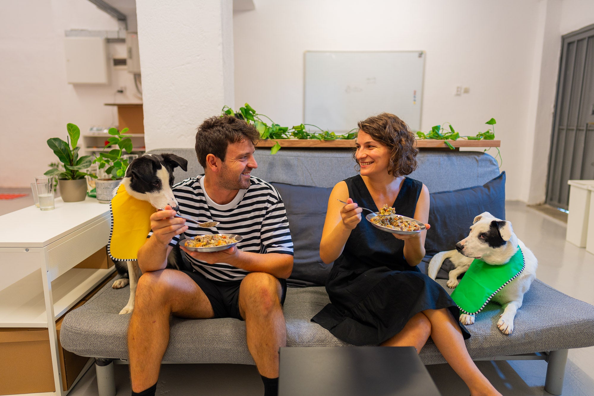 Bucătarii personali al Panacottelor: Lavinia & MihaiÎntr-un final, a fost simplu. De ce să căutăm atâtea diete, prescripții, când puteam să le dăm noi ceva fresh, gătit pe loc, controlat 100%? Am luat legume, carne, mirodenii și le-am gătit încet. A funcționat atât de bine că nu le puteam da din calea aragazului în timp ce găteam pentru ele.